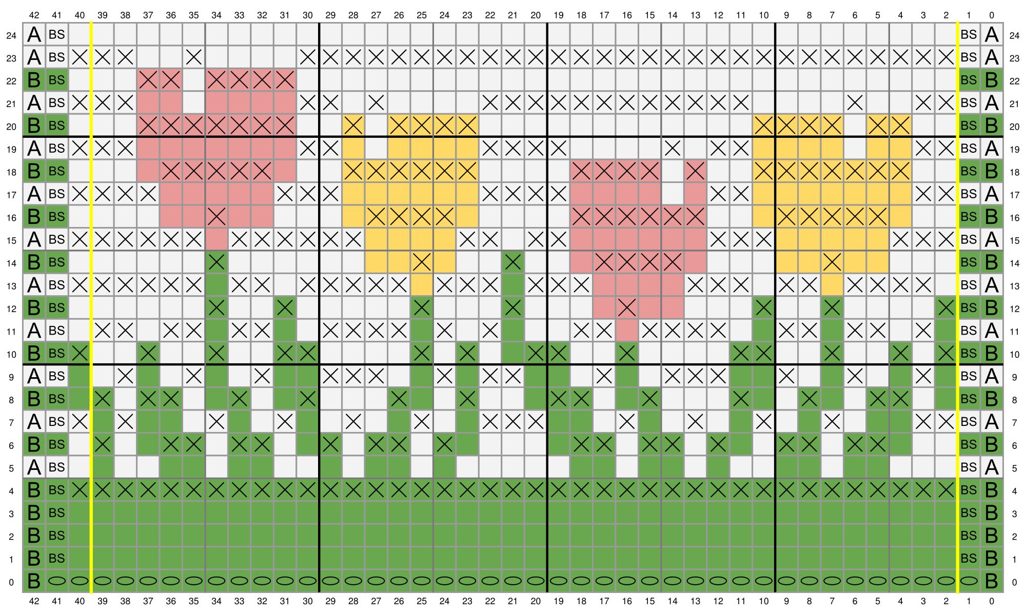 - Repeat only the stitches between the yellow lines of the chart for the body of your project.